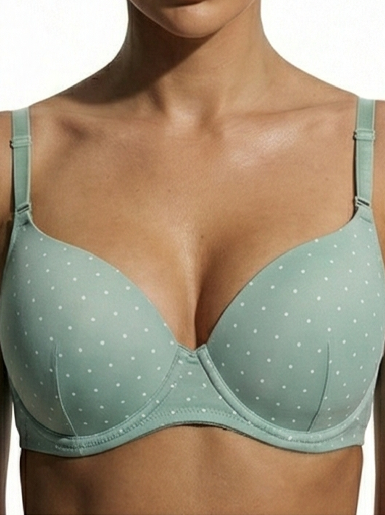 Product Details: • Designed with White Dots and front darts • Moulded cups • Adjustable straps • Hook-and-eye fastening • Designed to fit perfectly Product Code: Hand wash only Lightweight fabric: smooth, stretchy super soft Main: 92% Nylon, 8% Polyester Designed to be perfectly lightweight, it offers a comfortable fit without sacrificing style